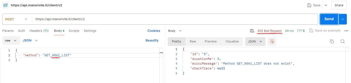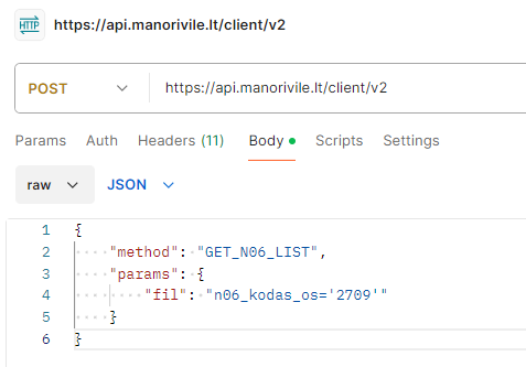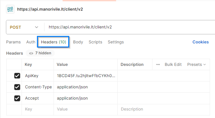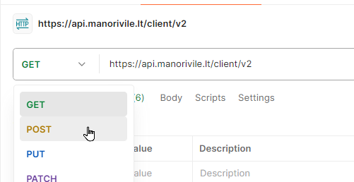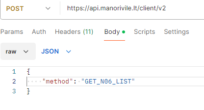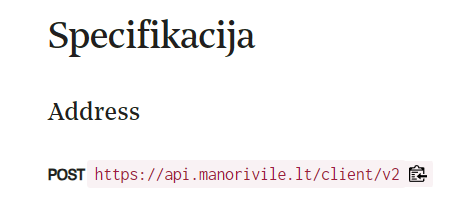 We see that we need to use command POST with URL https://api.manorivile.lt/client/v2